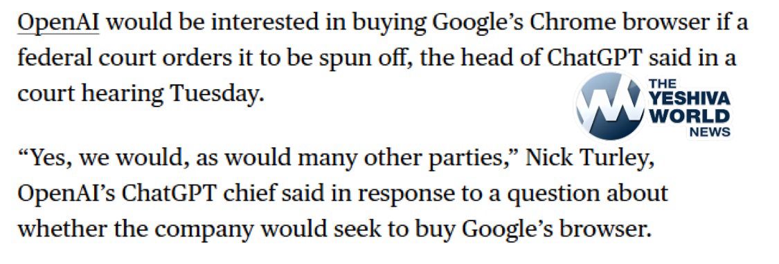 OpenAI would be interested in buying Google’s Chrome browser if a federal court orders it to be spun off.