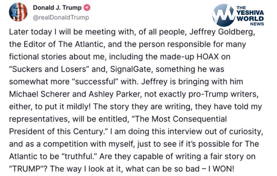 President Trump says that he will be meeting later today with Jeffrey Goldberg, the Editor-in-Chief of The Atlantic who was inadvertently added to a Signal group-chat early last month by National Security Advisor Mike Waltz.