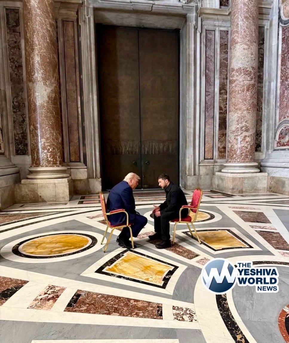 President Trump sat down to meet privately with Ukrainian President Volodymyr Zelenskyy in Vatican City this morning.