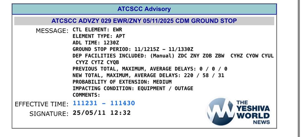 Another air traffic control equipment outage caused the FAA to implement another ground stop for Newark flights this morning. FAA advisories show the ground stop lasted for about 45 minutes. This comes after 90-second-long radar and radio outages twice in the past 2 weeks.