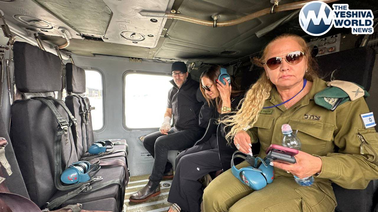 Edan Alexander’s mother aboard an IDF helicopter, traveling to the Re’im Airbase, where she will be reunited with her son.
