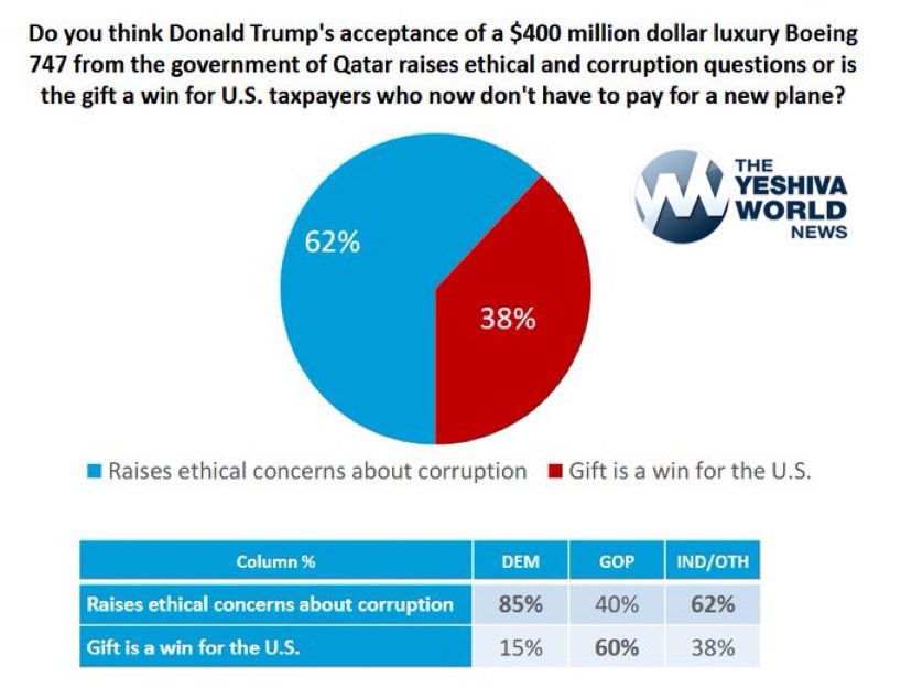A new poll shows that 62% of Americans feel that the $400 million Qatari jet gift is a bad idea.
