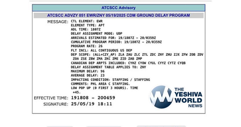 Following another outage this morning at Newark airport, the FAA has issued a ground delay until 11:59p due to a staffing issue.
