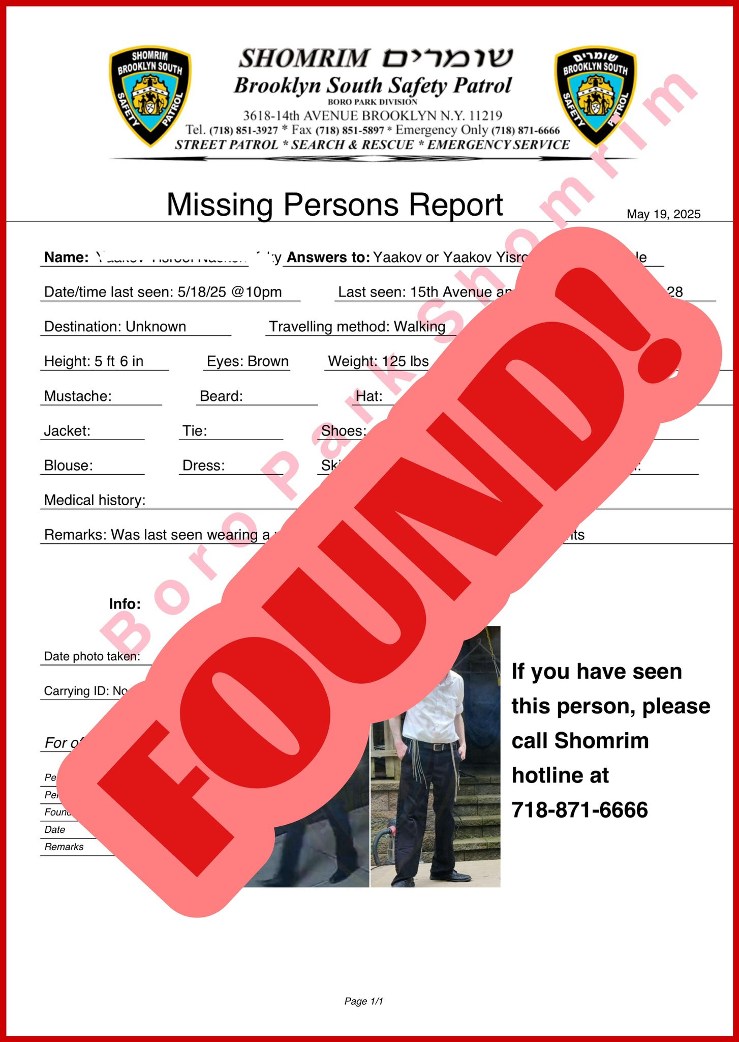 UPDATE: The missing person who was reported missing earlier today has been safely located.