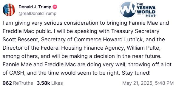 NEW: President Trump says he’s ‘seriously considering’ taking Fannie Mae & Freddie Mac public.
