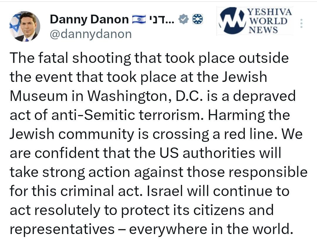 Israel’s UN Ambassador Danny Danon Calls DC Jewish Museum Shooting “Depraved Anti-Semitic Terrorism”