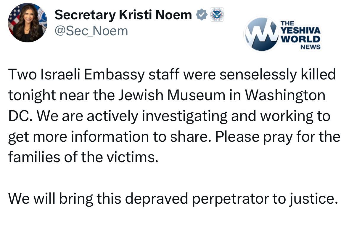 🚨🚨 Two staff members from the Israeli Embassy were fatally shot outside the Jewish Museum in Washington, D.C., on Wednesday night