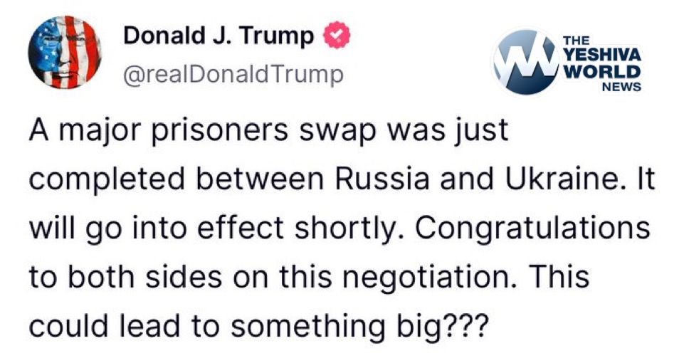 President Trump states that a “Major prisoner swap” was just completed between Russia and Ukraine.