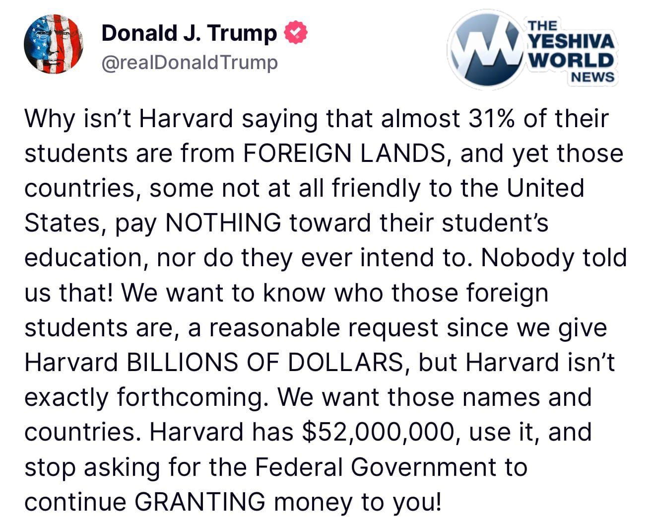 🚨 Trump GOES OFF on Harvard, saying he wants to know which countries their foreign students come from.