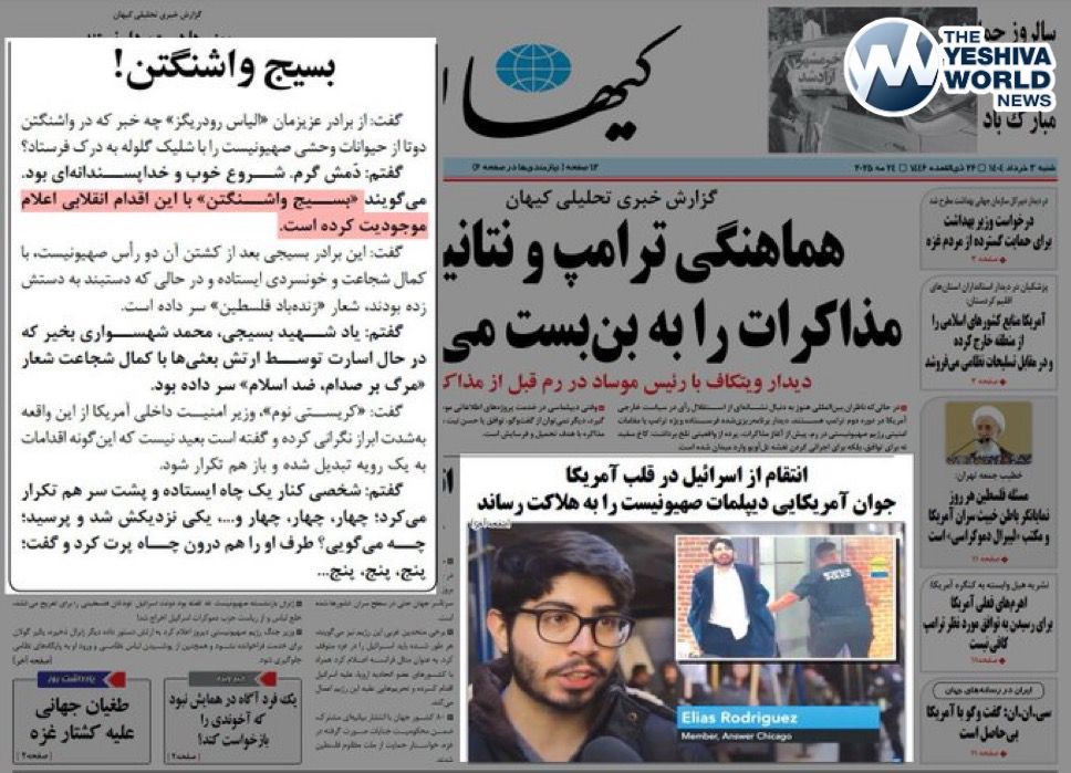 Kayhan, the official mouthpiece of Supreme Leader Khamenei, praised the terror attack on 2 Israeli embassy staff in Washington DC last week, and called the attacker the founder of the “Washington Basij,” echoing Iran’s brutal paramilitary force.