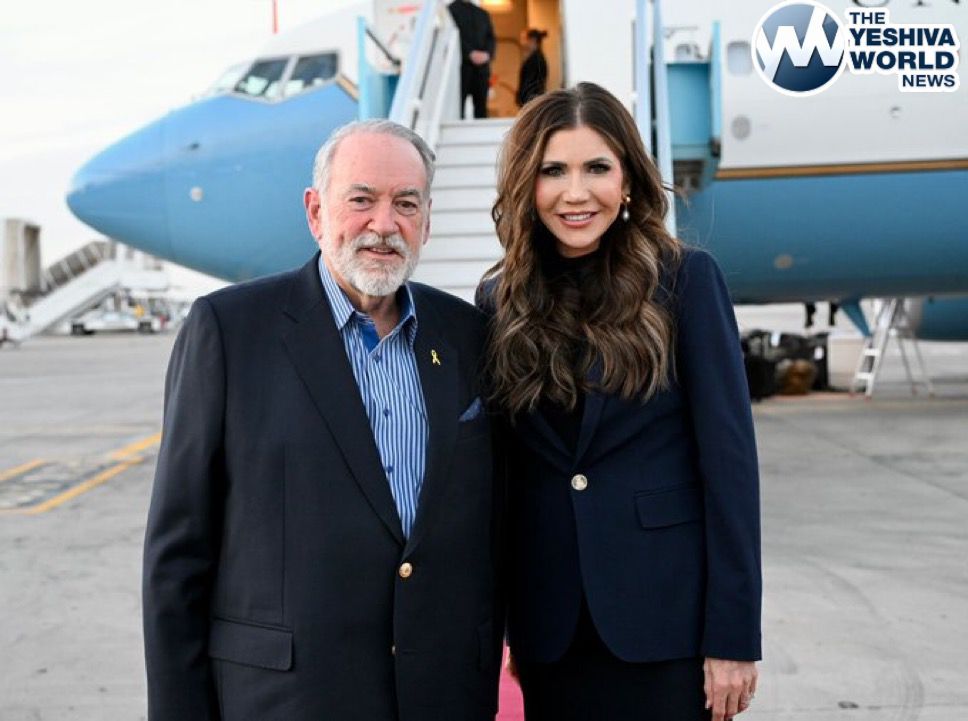 Ambassador Mike Huckabee welcomes Secretary Kristi Noem to Israel.