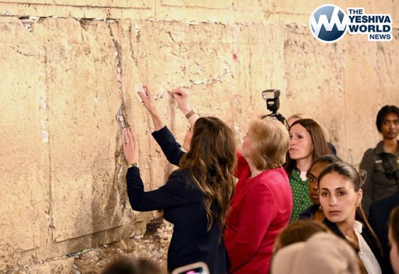 U.S. Secretary of Homeland Security Kristi Noem is seen inserting a kvitel into the Kosel.