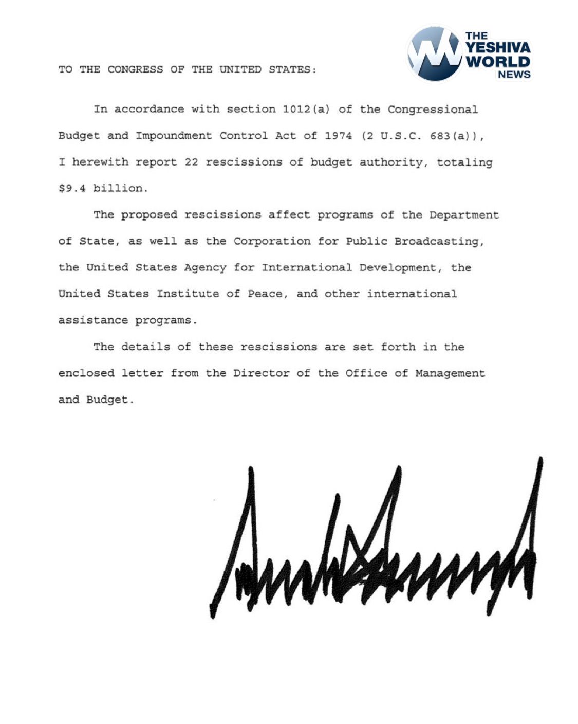 The White House sent Congress a $9.4 billion rescissions package, codifying DOGE cuts, including $1.1 billion from the Corporation for Public Broadcasting (funding NPR and PBS) and $8.3 billion from foreign aid and USAID.