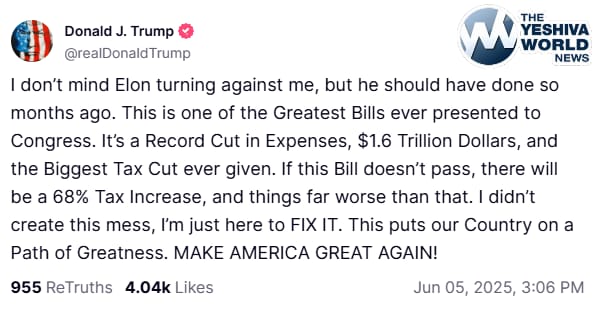 POTUS: “I don’t mind Elon turning against me, but he should have done so months ago. This is one of the Greatest Bills ever presented to Congress…”