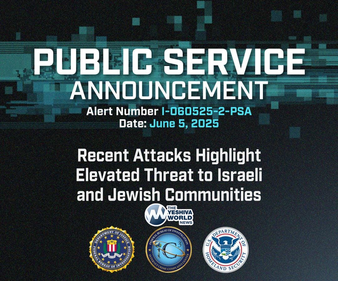 🚨 The FBI and DHS are warning of an “elevated threat” facing the Jewish community following the attacks in Colorado and last month’s killing of two Israeli Embassy staff members in DC.