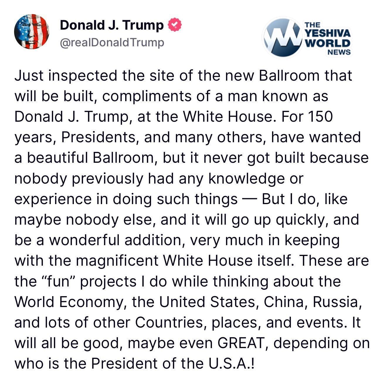 AFFORDABLE WEDDING OPTION? President Trump says he has inspected the site for the new White House ballroom that is being built.