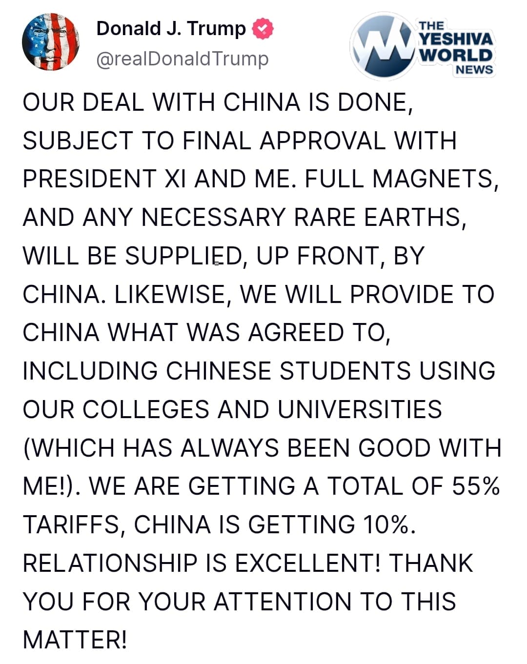 🚨 BREAKING: President Trump announces the deal with China is DONE.