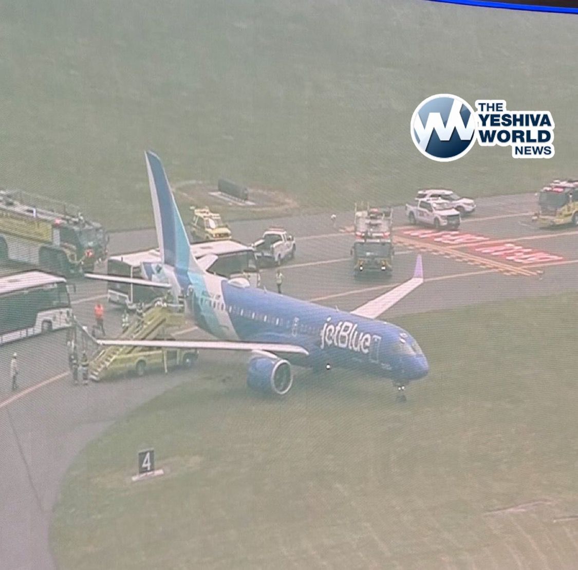 UPDATE: No injuries are being reported folllowing the JetBlue flight 312 that veered off the runway. Emergency crews are on the scene, and passengers are deplaning and are being brought to the terminal safely.