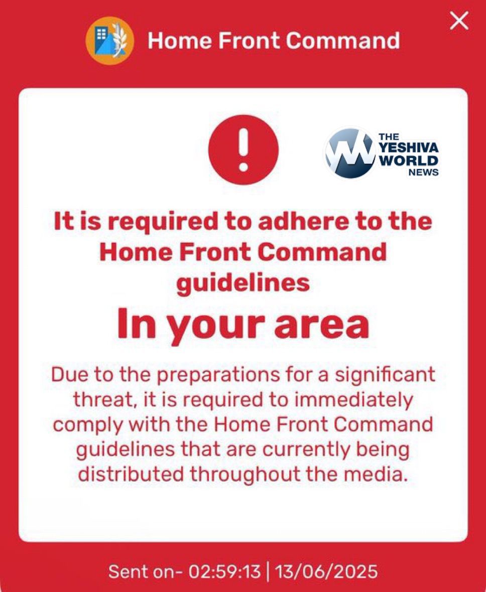 The Israeli Homefront Command has instructed Israelis to shelter-in-place due to the ongoing military action in Iran.