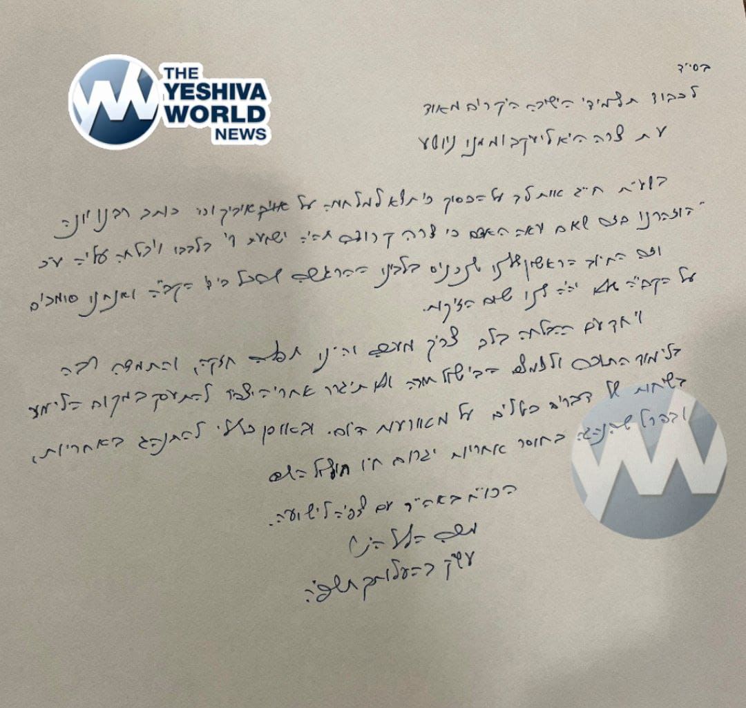 Hagaon HaRav Moshe Hillel Hirsch in a special letter of Chizuk from his location in the USA to yeshiva Bochrim in Eretz Yisroel: ‘To instill in our hearts the feeling that everything is in the hands of Hashem.’. The Rosh Yeshiva calls on yeshiva Bochrim to strengthen their Limud HaTorah, avoid wasteful activities, and act responsibly.”