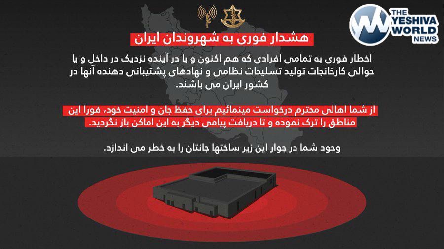 For the first time in history, the IDF warned Iranian civilians to evacuate areas near military weapons sites, saying their presence puts lives at risk ahead of planned strikes.