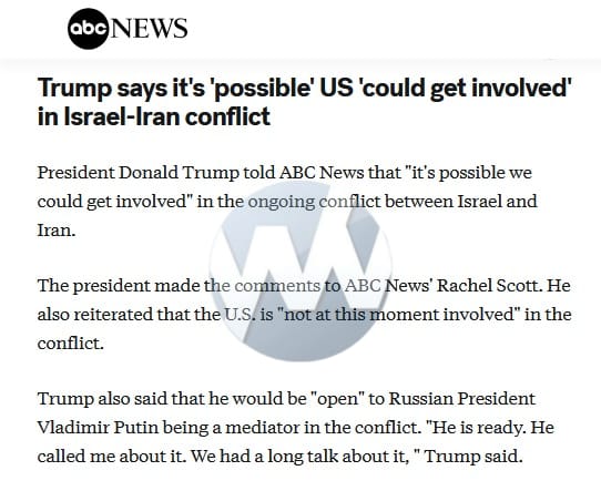 🚨 Trump Says It’s “Possible” U.S. “Could Get Involved” In Iran War