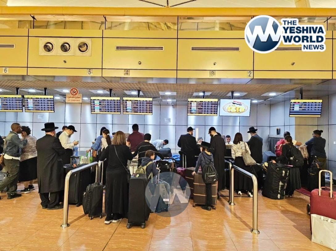 Many who became stranded in Israel due to the sudden outbreak of the Israel-Iran war have been leaving via alternate routes. Here, dozens of Jews are seen at Sharm El-Sheikh in Egypt, seeking flights that will return them home. Notice the two “undercover” Yidden wearing baseball caps to conceal their identities.