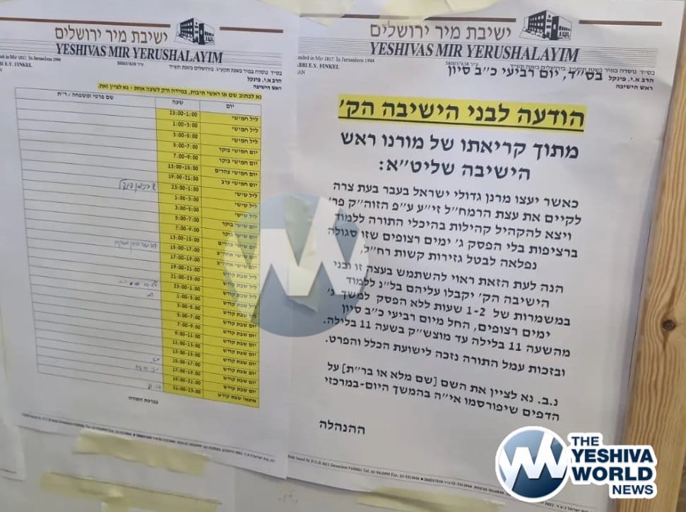 Amid the increasingly precarious security situation in Eretz Yisroel, Mir Yerushalayim has launched an initiative for its talmidim to take shifts in order to learn for three consecutive days without a single break in limud torah.