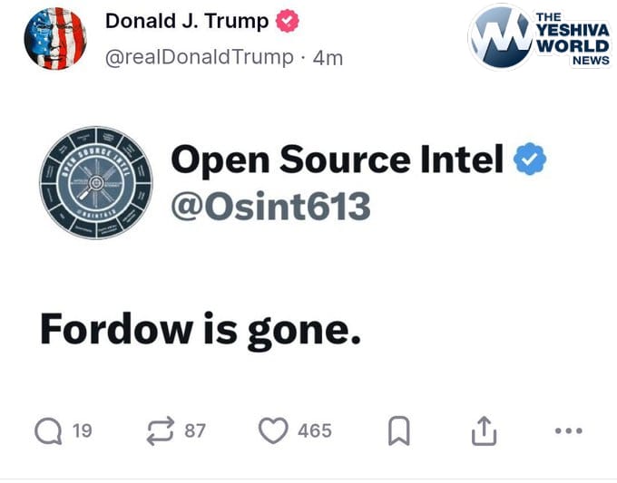 Trump Posts “Fordow Is Gone.”