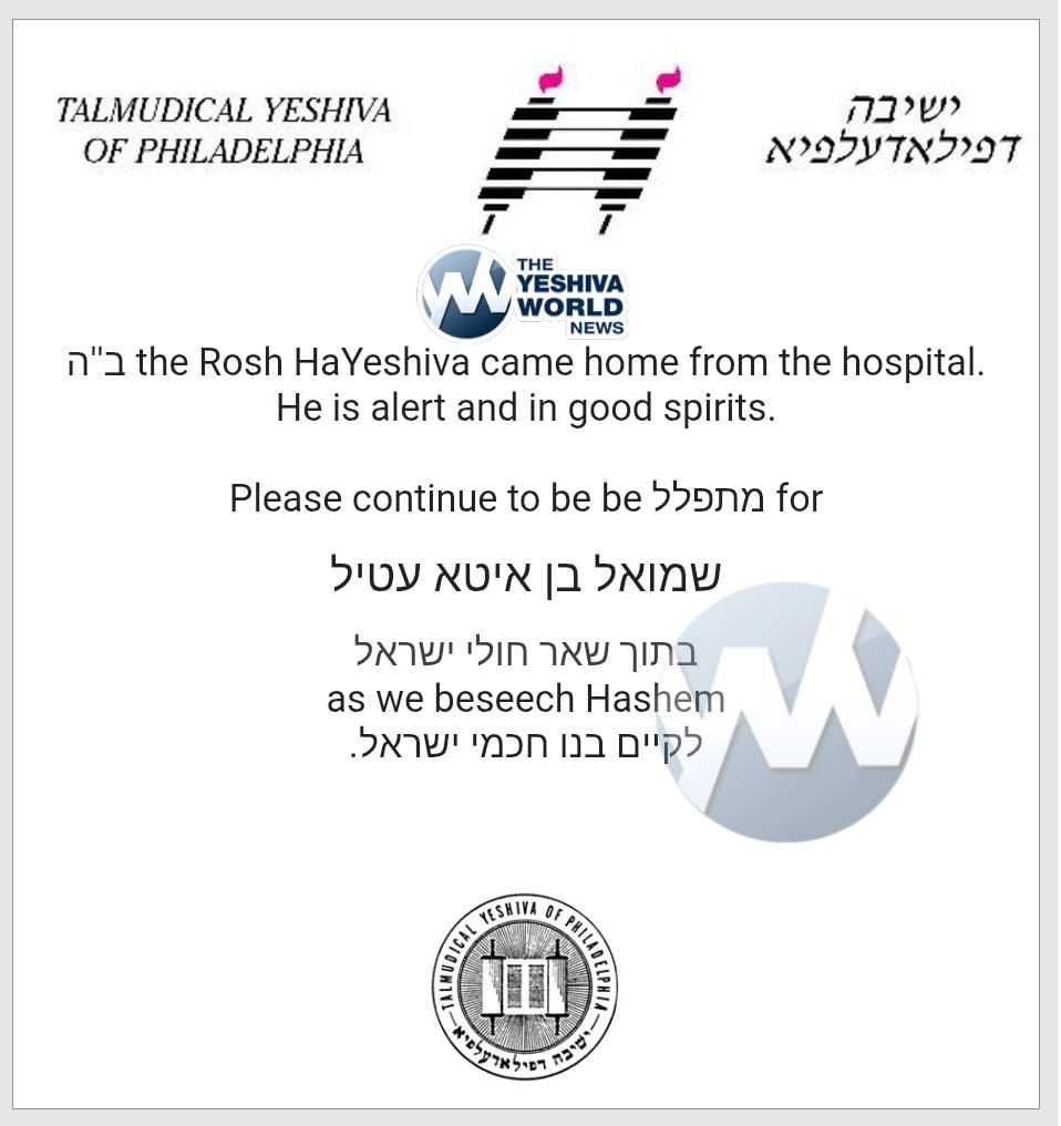 Hagaon HaRav Shmuel Kamenetsky Was Released From The Hospital