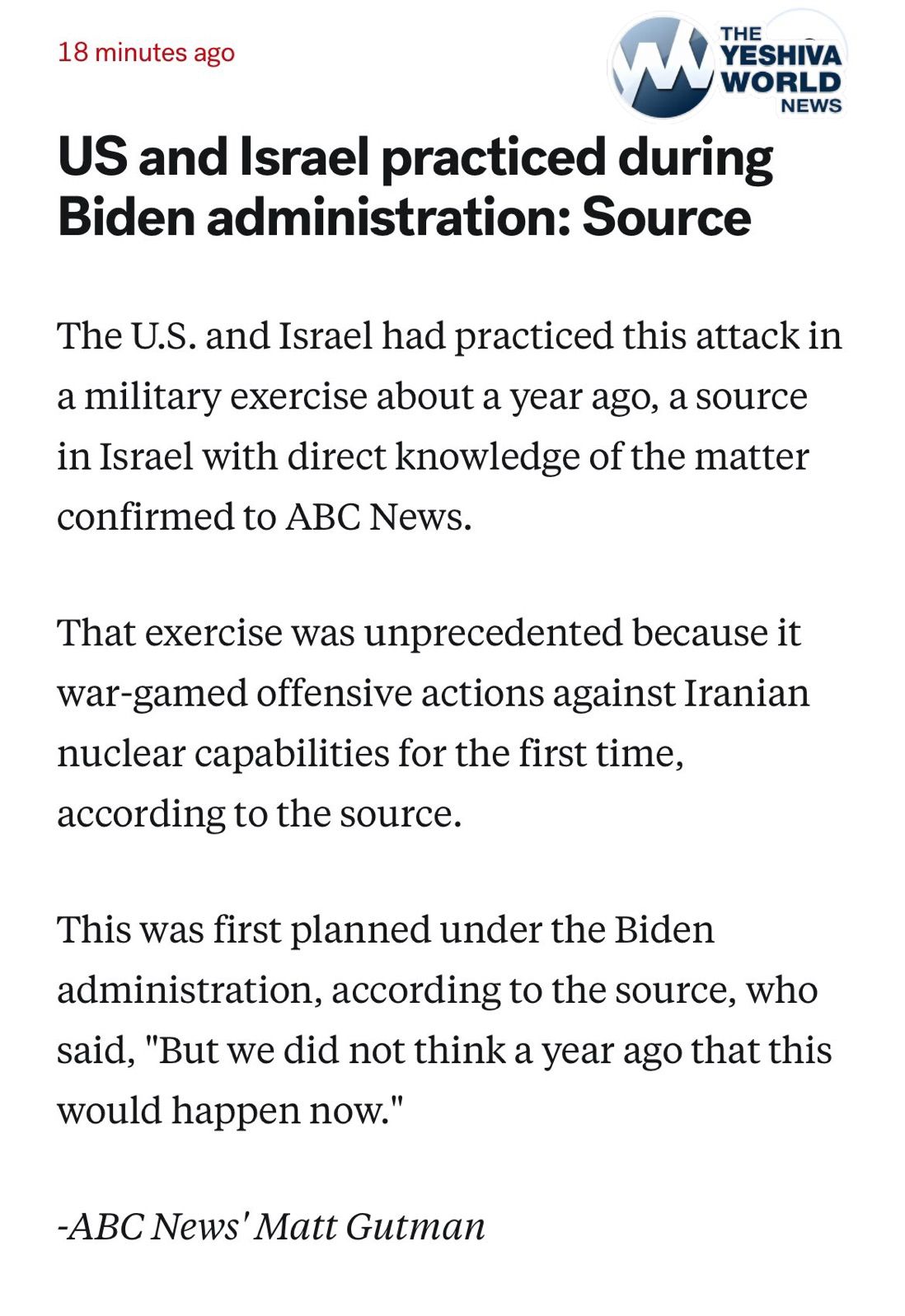 The U.S. and Israel had practiced this attack in a military exercise about a year ago, a source in Israel with direct knowledge of the matter confirmed to ABC News.