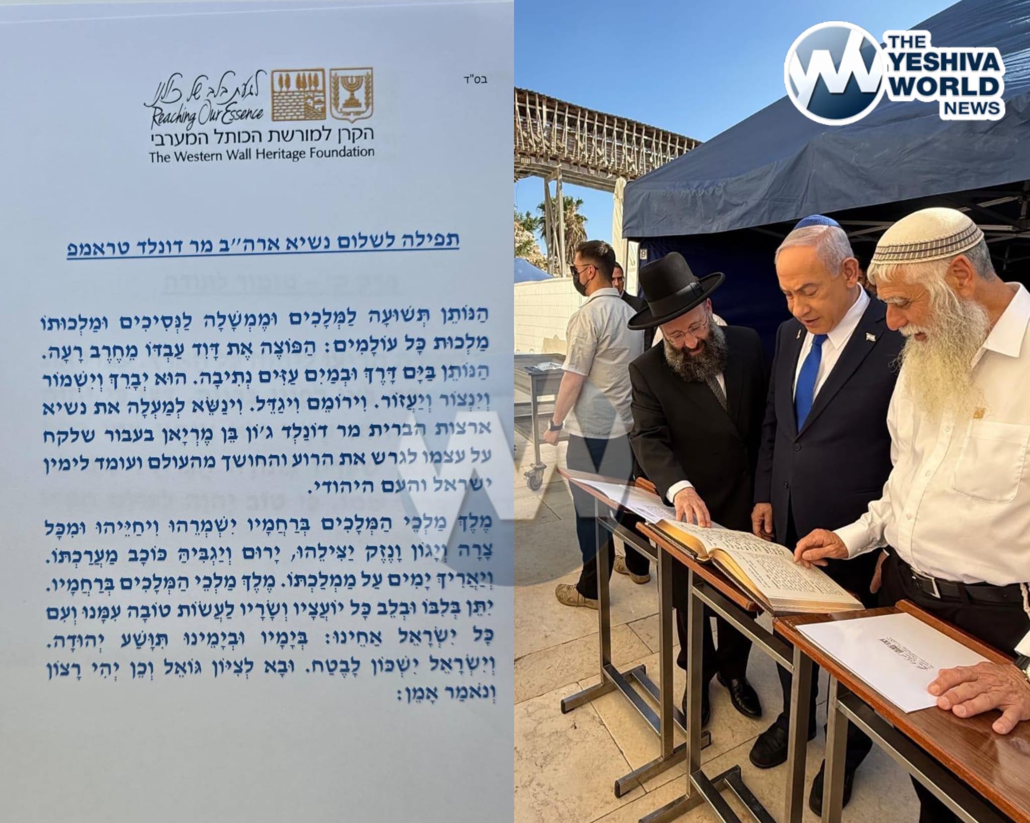 🔥 Prime Minister Netanyahu visited the Kosel a short while ago, where he thanked Hashem for saving Am Yisrael from a nuclear holocaust. Netanyahu also recited the special Tefillah for President Trump.