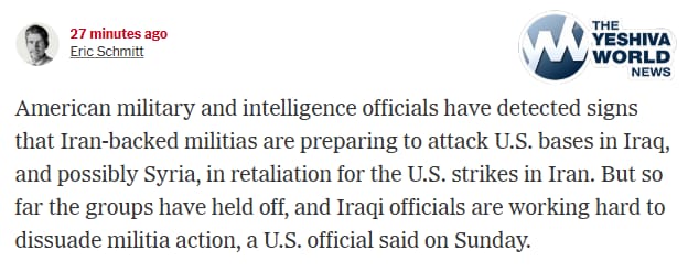 🚨 NYT: “Intelligence officials have detected signs that Iran-backed militias are preparing to attack U.S. bases in Iraq, and possibly Syria.”