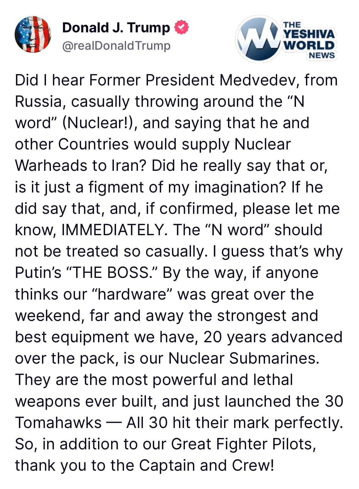 🚨 NEW: President Trump responds to Russia’s former president using the “N word.”