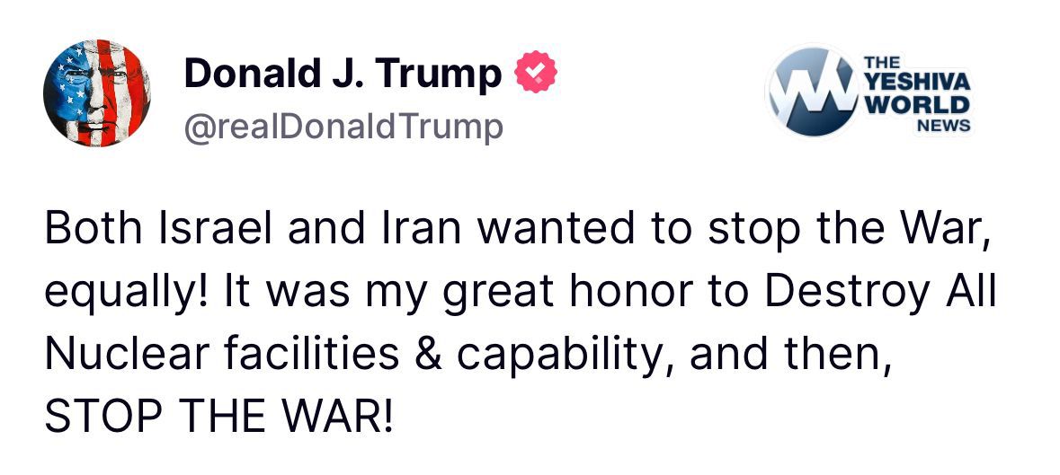 MORE FROM TRUMP ON ISRAEL-IRAN CEASEFIRE