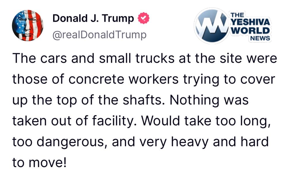 TRUMP ON FORDOW: The cars and small trucks at the site were those of concrete workers trying to cover up the top of the shafts. Nothing was taken out of facility. Would take too long, too dangerous, and very heavy and hard to move!