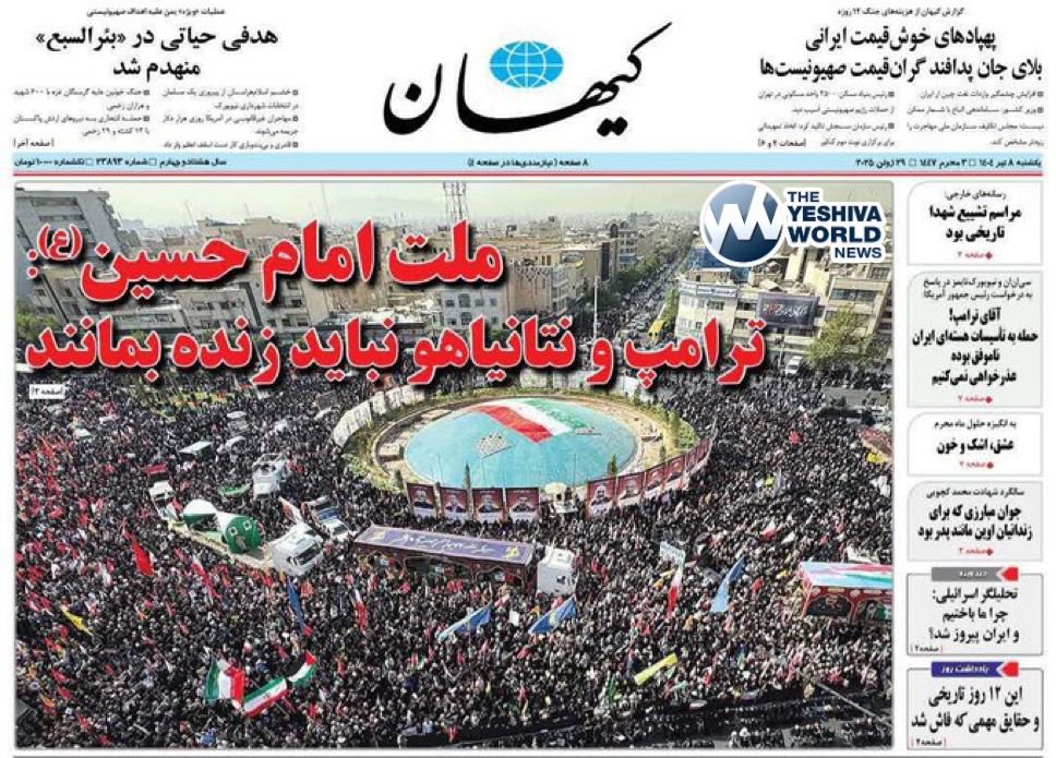 Iran’s Kayhan newspaper, overseen by Khamenei’s representative, threatened Trump and Netanyahu with death in a front-page article, stating they “should not be allowed to live” after the funeral of top IRGC commanders in Tehran.