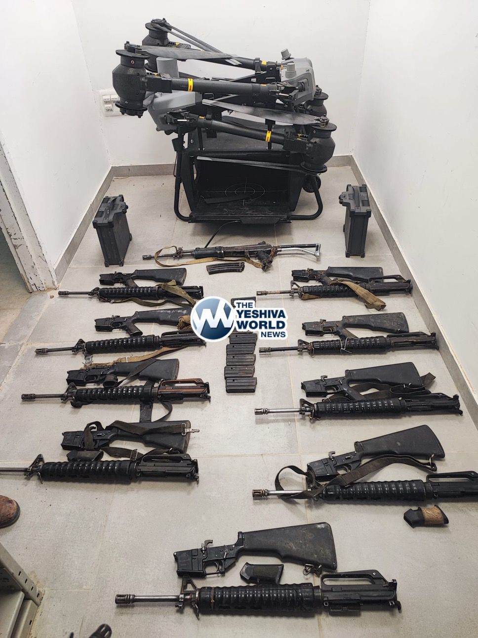 IDF forces thwarted two weapons smuggling attempts along the Egyptian border, intercepting a drone from Egypt carrying 10 weapons last night and seizing them, and in another incident, troops pursued a suspicious vehicle, arrested the driver, and confiscated 14 additional weapons found inside.