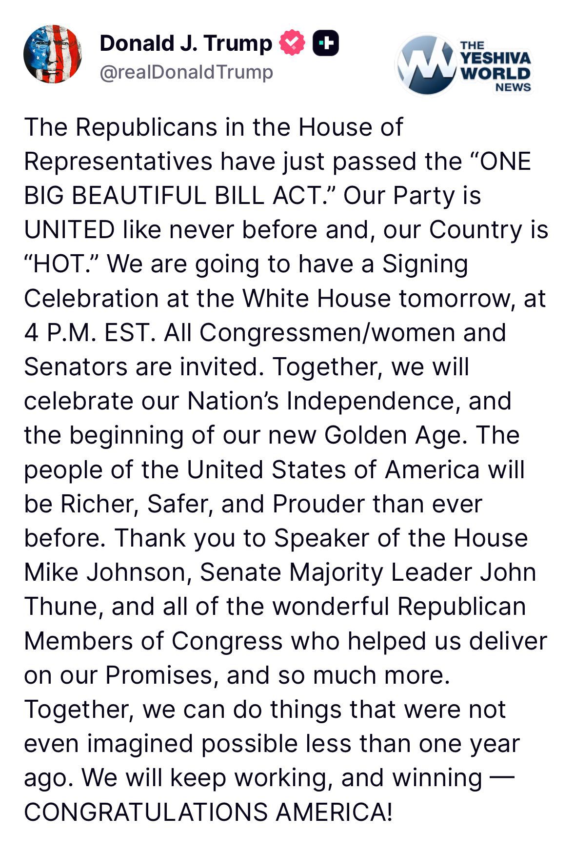 President Trump celebrates the passage of his landmark “big, beautiful bill” in the House of Representatives