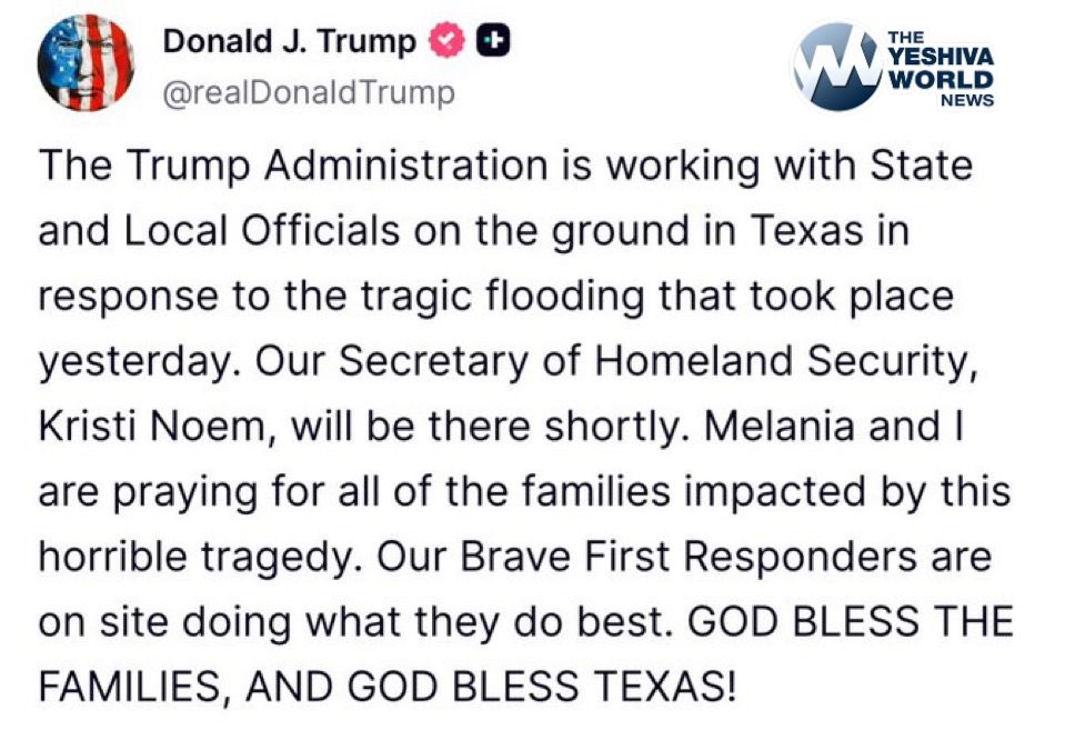 Trump Coordinates with Texas on Flood Response, Sends DHS Secretary Noem