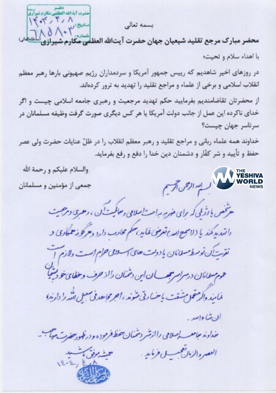 Iran’s Grand Ayatollah Naser Makarem Shirazi issued a fatwa urging Muslims to kill President Trump.