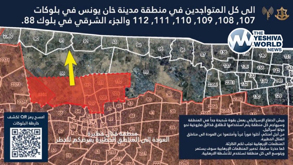 The IDF has ordered an immediate evacuation of residents in western Khan Younis, southern Gaza Strip, following rocket attacks launched from the area targeting Israel.