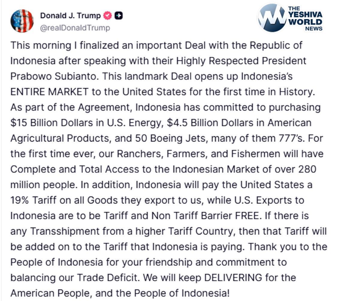 President Trump releases details of Indonesia trade deal.