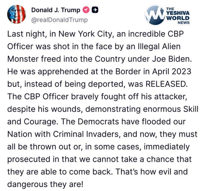 Trump Responds to NYC Shooting of Border Patrol Officer by Illegal Alien
