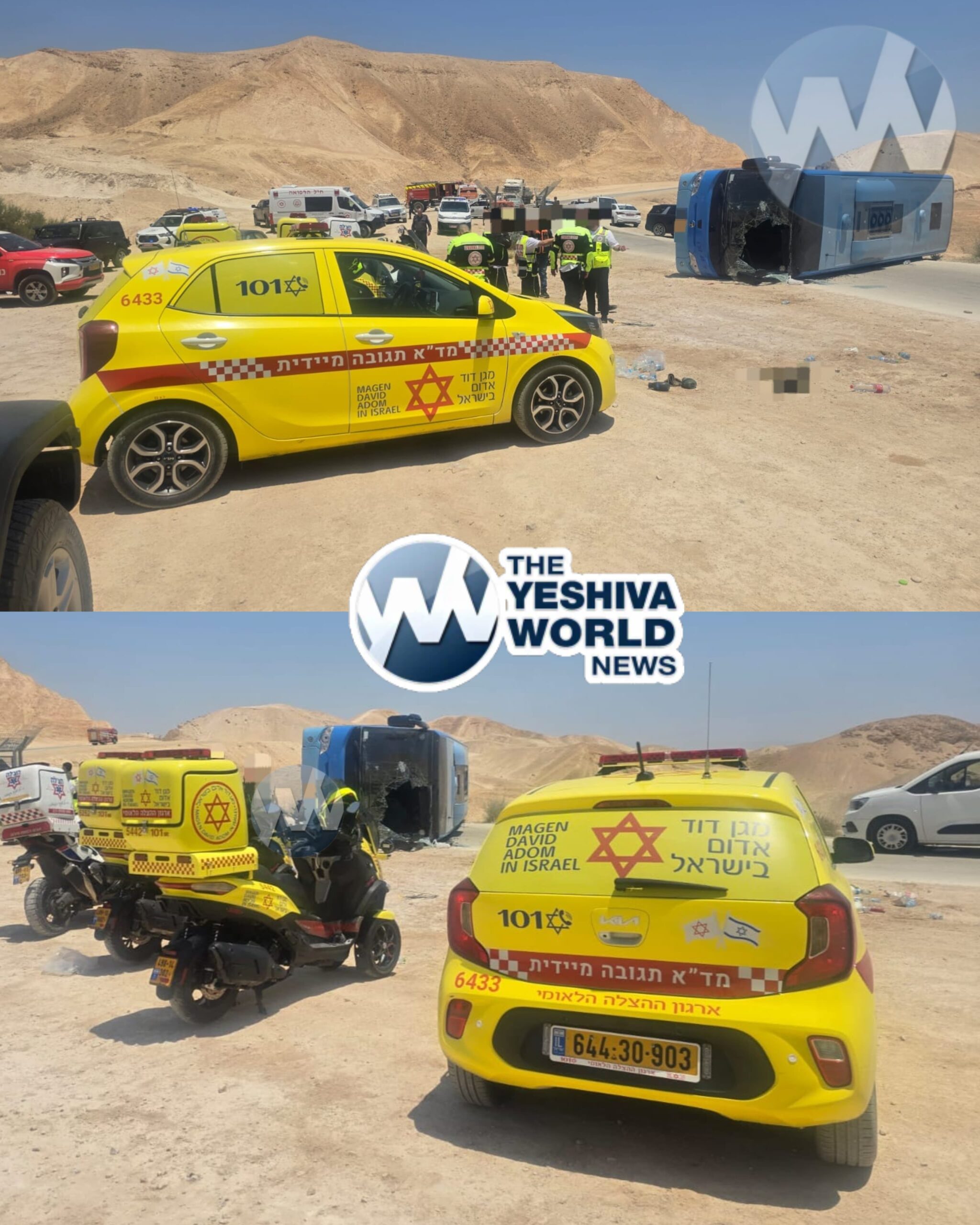 A small bus overturned on Monday near Nabi Musa, close to Mitzpe Yeriho, leaving 10 people injured. Magen David Adom teams, assisted by IDF medical personnel, treated the victims at the scene and evacuated them to hospitals in Jerusalem.