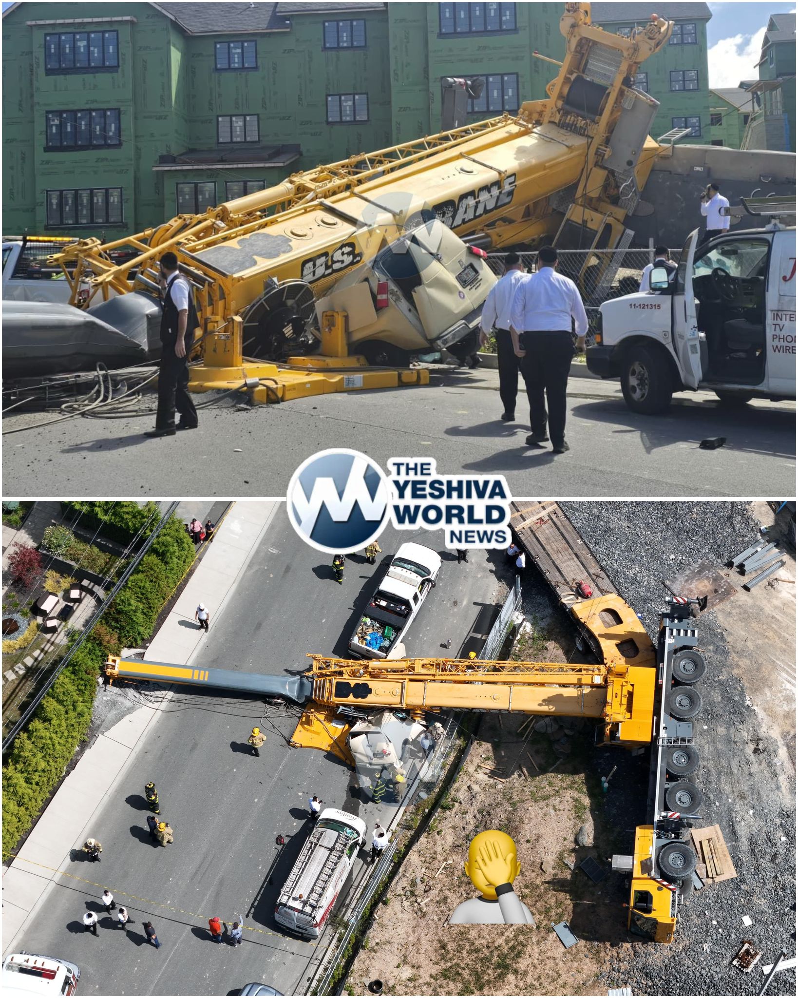 NISSIM IN KIRYAS JOEL: A crane collapsed earlier this morning at Acres Road and Bakertown Road, crushing a 15-passenger vehicle. Miraculously, no injuries have been reported. Kiryas Joel Hatzolah, Kiryas Joel Fire Department, KJ Public Safety, and New York State Police all responded to the scene.