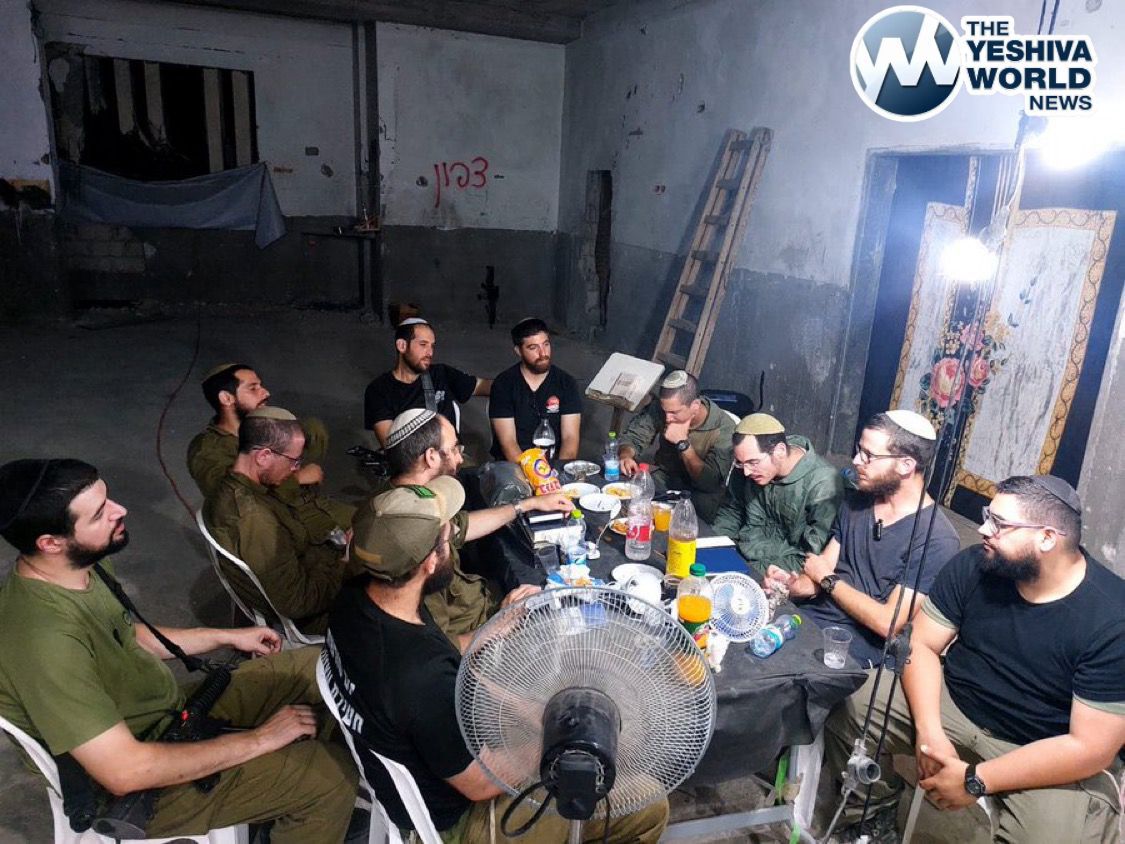 Even in the depths of Gaza, these men in uniform are engaged in a seder limud of Sefer Orot by Rav Kook zt”l, in Rafah, Tel al-Sultan.