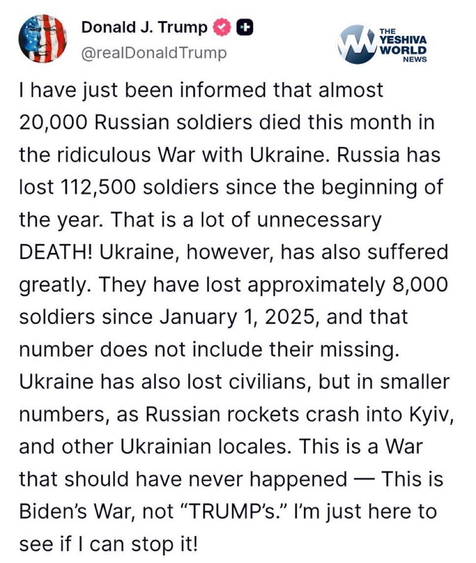 President Trump posts about the losses in the Russian Ukraine war says “I’m just here to see if I can stop it.”