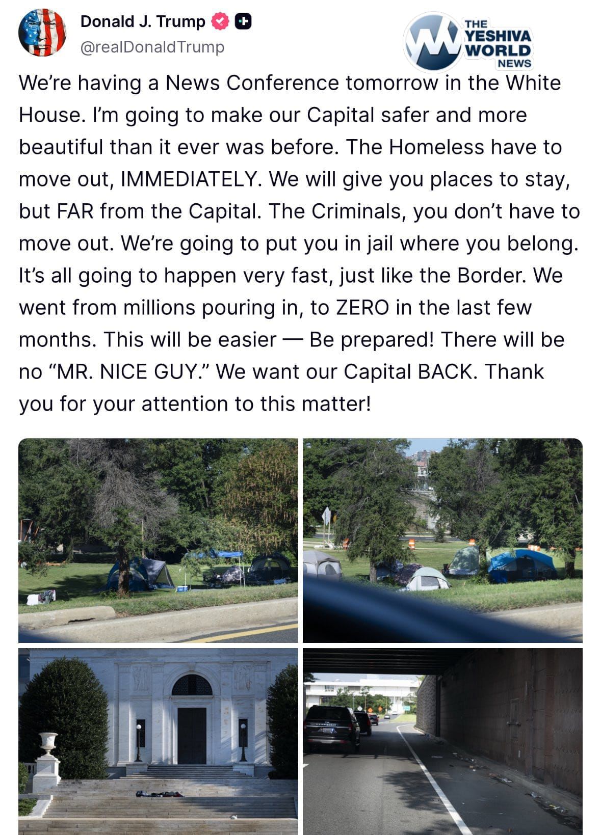 BREAKING: President Trump tells all DC criminals he is going to put them in jail, he will clean out the homeless – “no more MR NICE GUY.”