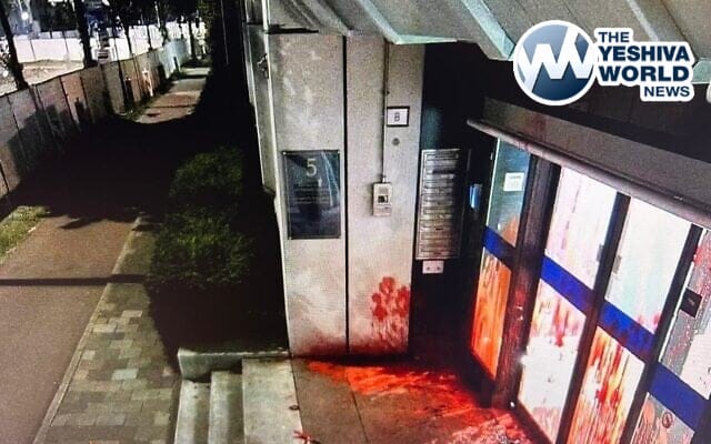 The Foreign Ministry reports that three people vandalized the Israeli Embassy in The Hague this morning. Photos show the entrance splattered with red paint and the front door smashed. Local security forces responded quickly, and Dutch police arrested all three suspects.